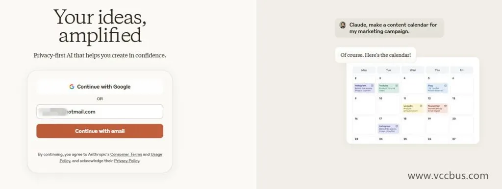 首先,访问Claude官网:Claude官网,输入您的电子邮箱,接收验证码或点击邮箱中的验证链接以完成邮箱验证。