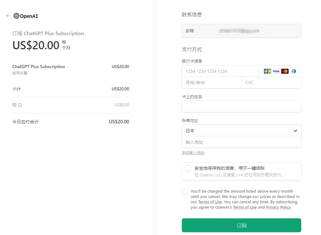 提交订阅时,确保你的IP节点位于美国、欧洲或新加坡等地区,否则可能会提示信用卡被拒绝。