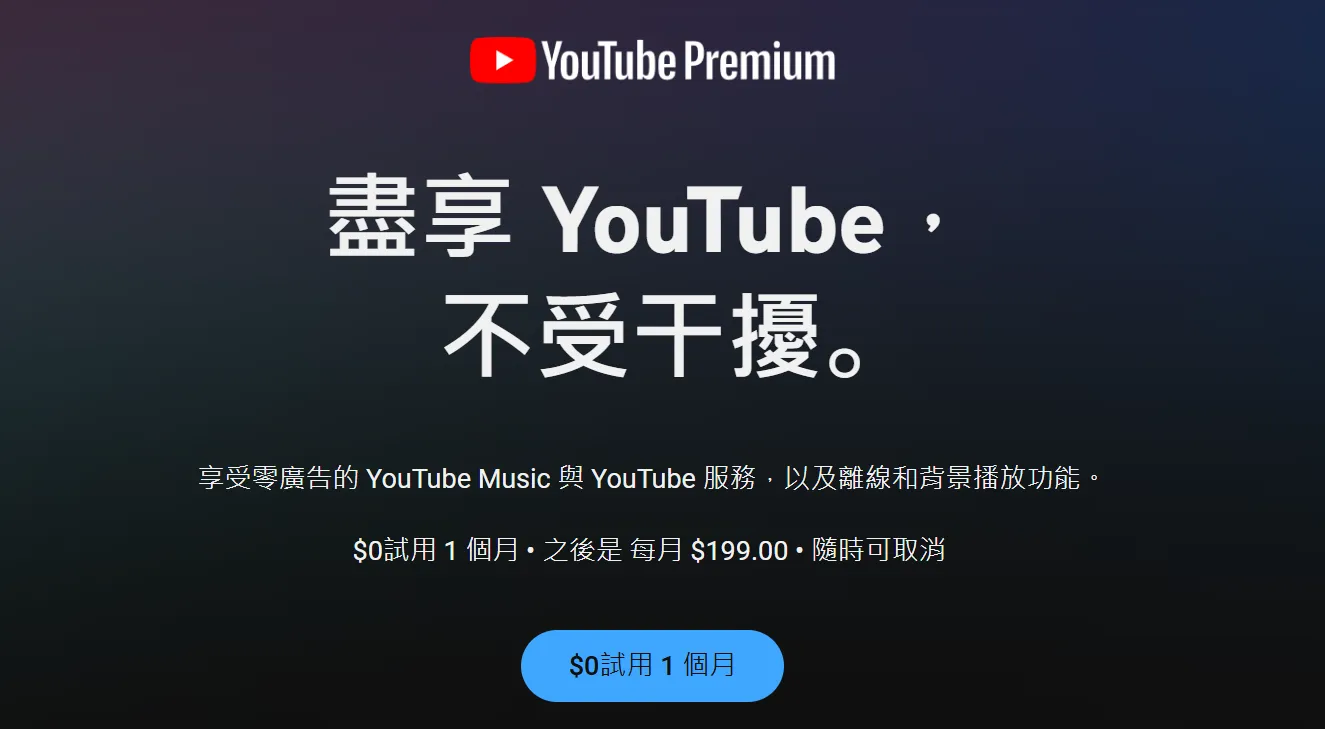 此外,YouTube Premium 提供 一个月试用服务,如果您还在犹豫是否付费订阅,不妨先体验一下无广告的 YouTube;但请记得在 试用期结束前 主动取消订阅,否则会被自动续订扣款。