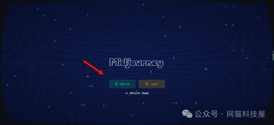 打开 Midjourney 网站后,点击 “Sign up” 进行注册。