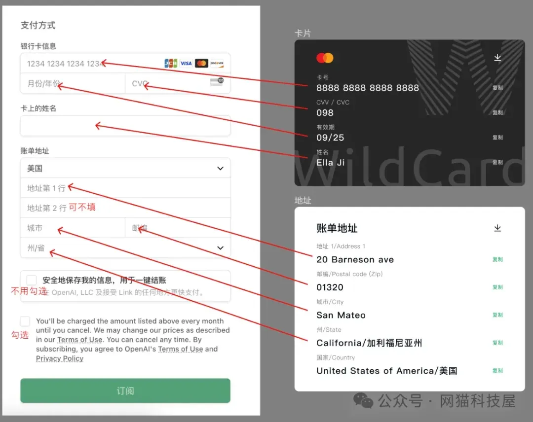 开卡充值后,将卡片信息填写到对应框内,点击订阅即可完成升级。
