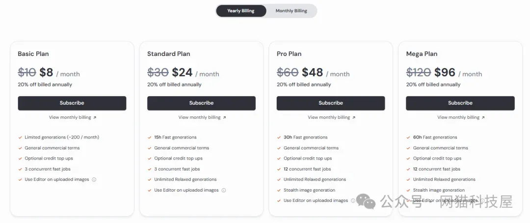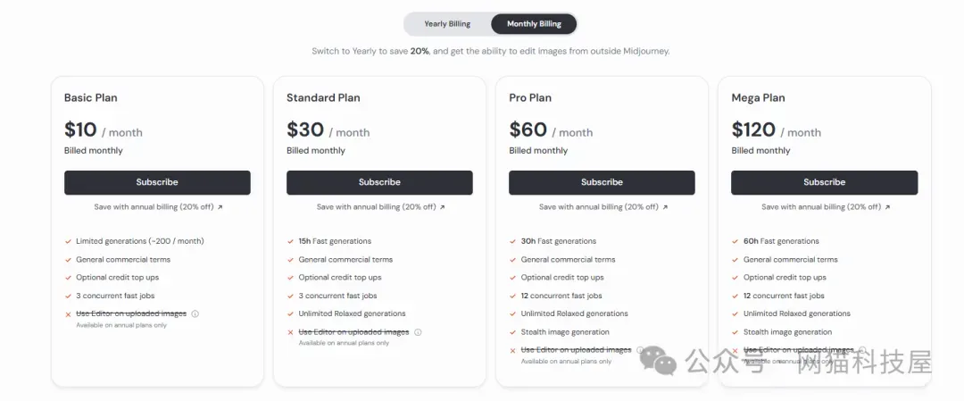 如果想深入研究 Midjourney,并在工作中使用,升级订阅是必不可少的步骤,升级后可以进行大量调试和生成图像。