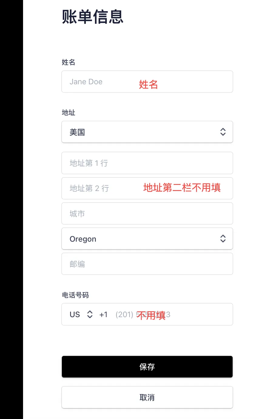 将账单信息中的姓名和地址更改为您卡片上的姓名和对应的账单地址,然后保存。