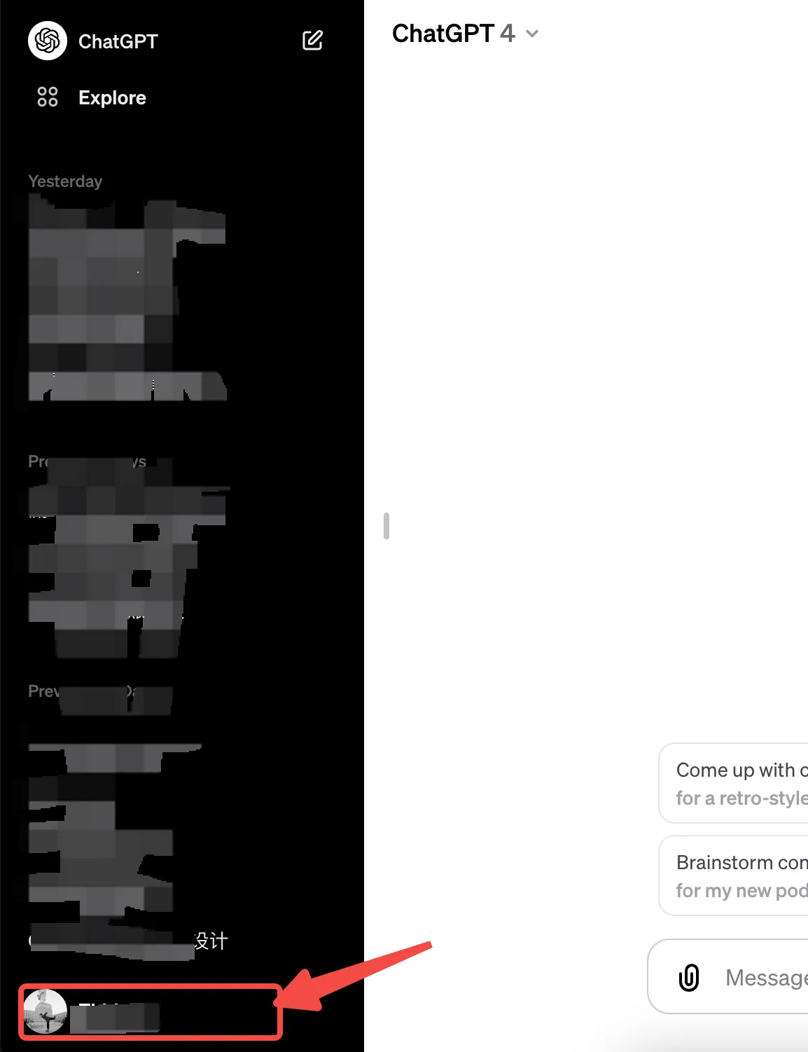首先,登录您的 ChatGPT 账户,并点击左下角的头像。