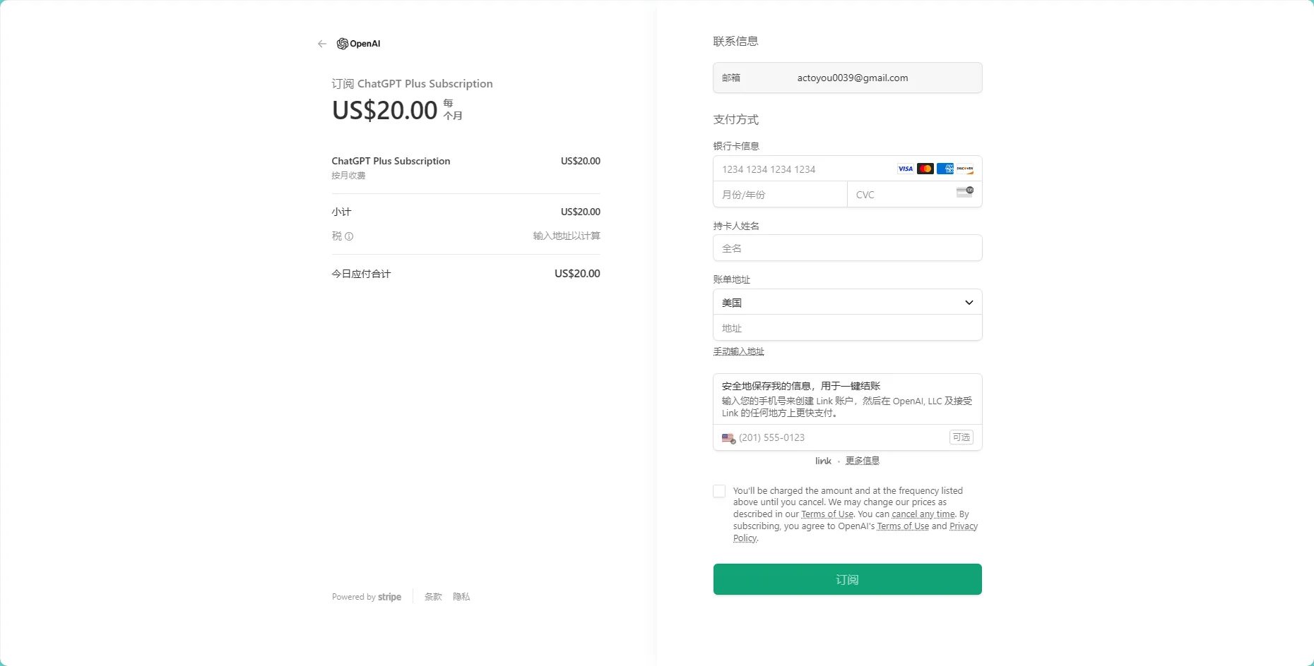 第三步: 按照提示填写卡片信息,点击最下方的订阅按钮即可完成。