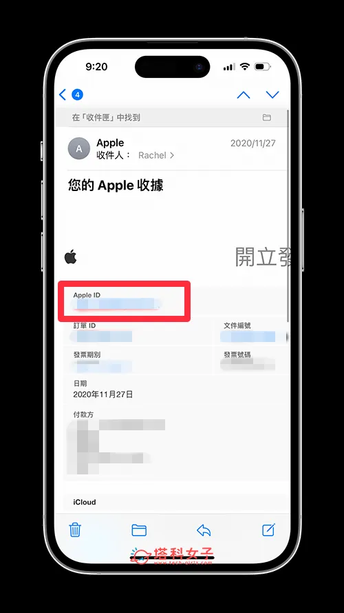 你也可以查看邮箱中 Apple 官方发送的“Apple 收据”,只要有付费订阅,Apple 一定会发送一封主题为“你的 Apple 收据”的电子邮件,里面会列出此次的应用订阅项目及使用的 Apple ID,检查收据上的 Apple ID 是否与当前 iPhone 登录的一致。