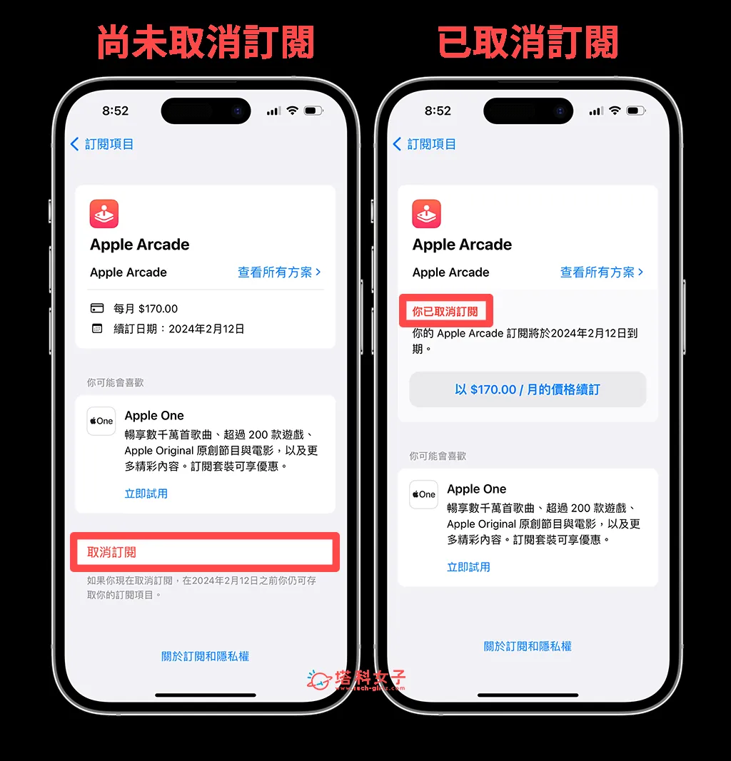 最常见的原因是你实际上已经取消了该应用的订阅。取消订阅后,订阅页面上将不再显示“取消订阅”按钮。如下图所示,左侧是“尚未取消订阅”,右侧则是“已取消订阅”,此时会显示“你已取消订阅”或“订阅即将到期”等提示,这也是导致 iPhone 找不到取消订阅的原因之一。