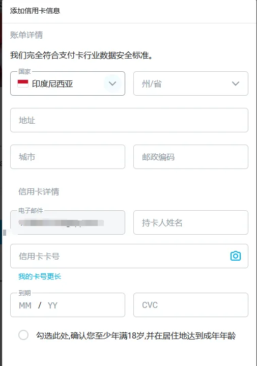 系统会提示你添加信用卡信息。如果你有国外信用卡,直接填写相关信息即可。如果没有,可以查看这篇文章来注册 野卡 | 一分钟注册,轻松订阅海外线上服务。