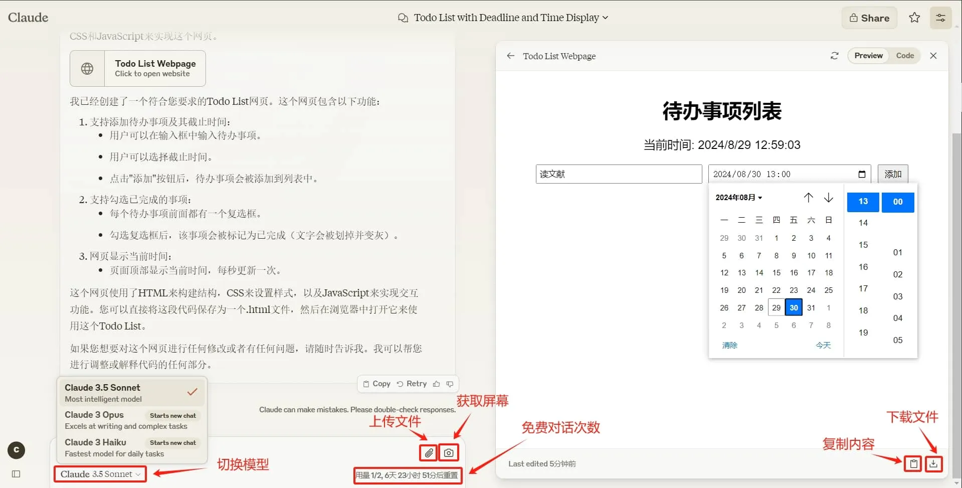 具体功能与官网相似,支持Artifacts。