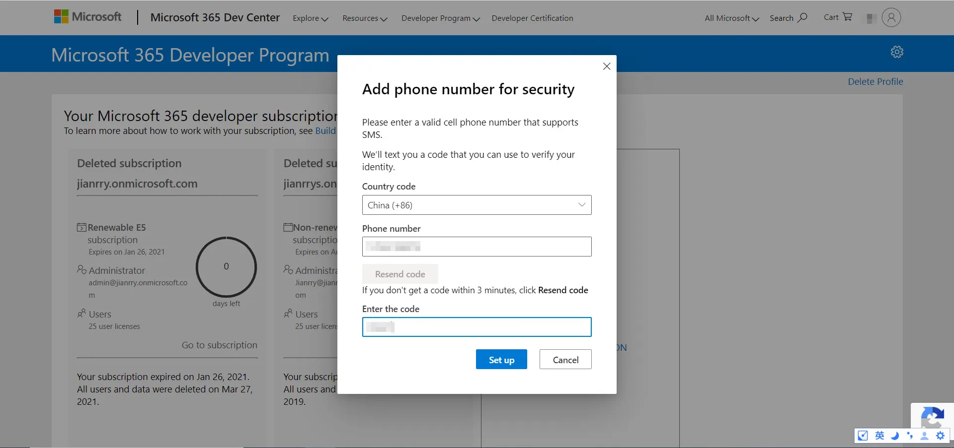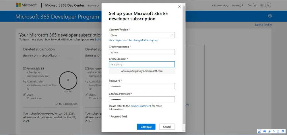 点击“SET UP SUBSCRIPTION”,开始申请 Microsoft 365 E5 订阅。