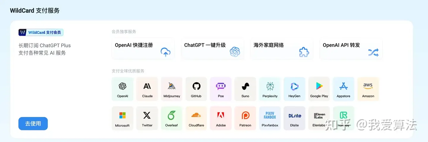 使用门槛极低,支持开通各类海外平台:ChatGPT、Claude、Google Play、Apple Store、OpenAI、X、Patreon、MidJourney、Amazon、POE、Microsoft、Facebook、GitHub、Telegram、PayPal等各类海淘订阅平台。使用邀请码:ACCPAY,立享消费0手续费,减免开卡费用。