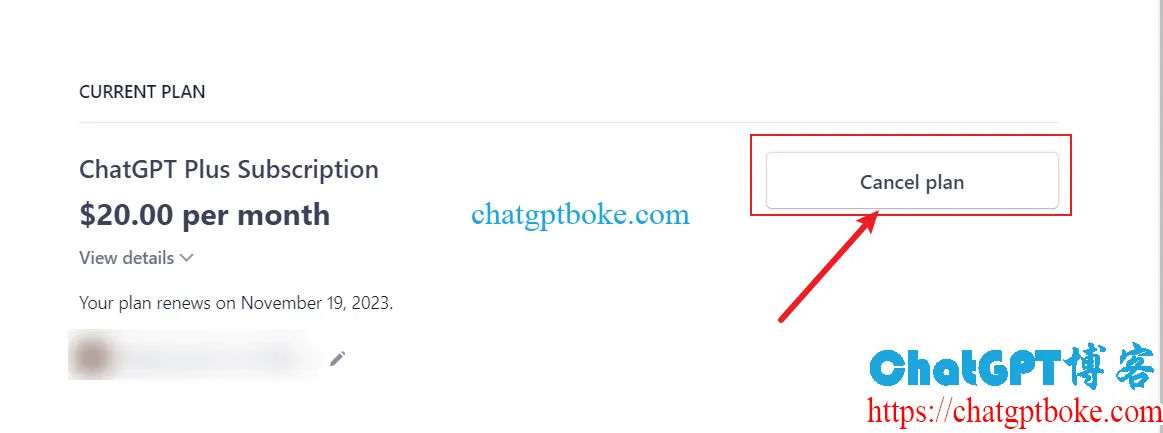如果状态显示已开启自动续费,您会看到提示:“Your plan renews on ***”,并且按钮变为 Cancel plan: