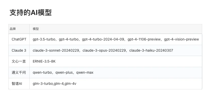 以下是平台的截图,可以看到无论是 ChatGPT 还是 Claude3 的模型,它们都得到了支持。