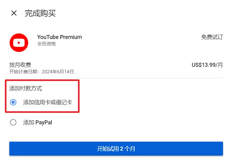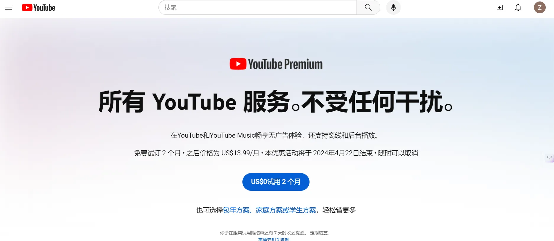 - 订阅页面:导航到 YouTube Premium 的订阅页面。