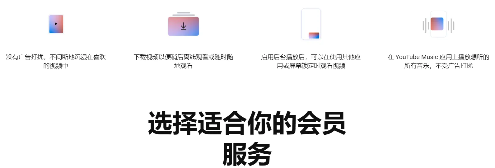 - 原创内容和 YouTube Music:包括对 YouTube 原创内容的访问权限,您可以观看原创剧集、电影和节目,同时享受 YouTube Music Premium 的无限制音乐播放。