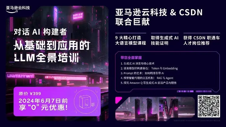 想要把握生成式AI时代的红利,亚马逊云科技与CSDN联合推出的「对话AI构建者:从基础到应用的LLM全景培训」不容错过!