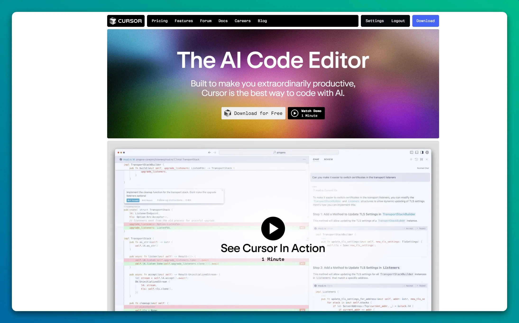 Cursor 是一个基于 VSCode 二次开发的代码编辑器,深度结合了 AI 特性。由于 VSCode 本身功能强大,插件丰富,Cursor 也因此能够充分利用这些优势。