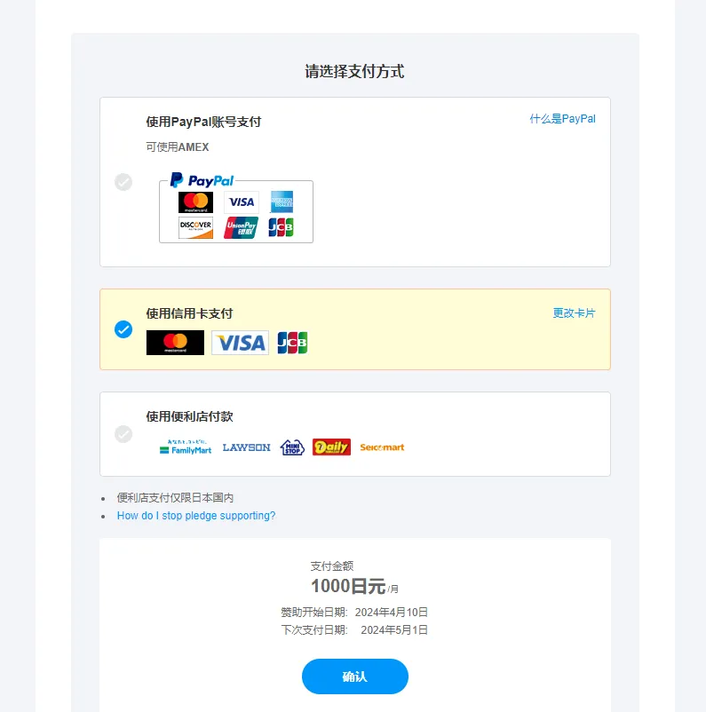 确保 野卡 虚拟信用卡中有充足的余额,就可以正式赞助了。