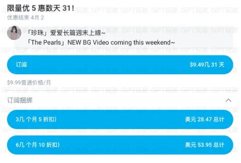 玩偶姐姐提供不同的订阅套餐,订阅时间越长,价格越优惠。