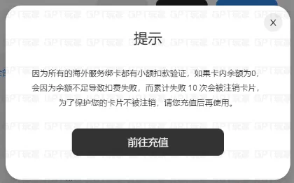 在复制 安全码/CVC/CVV 时,所有海外服务的绑卡都会进行 小额扣款验证。如果余额不足,累计10次扣费失败,卡片将被注销。因此,建议先向虚拟卡充值一定金额,再进行绑卡。