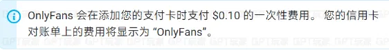 在OnlyFans上,绑定时需要支付 0.1美元 作为扣款验证。