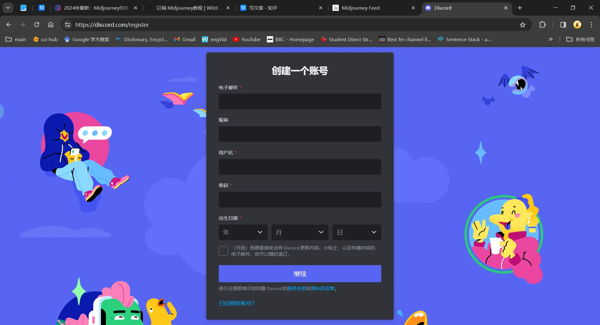 - 打开 Discord 官网,按照提示完成注册(建议使用浏览器无痕模式)。