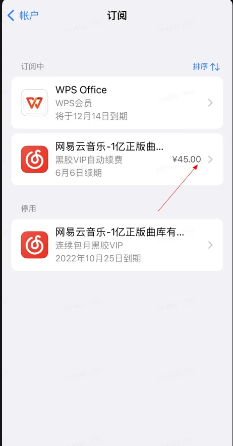 打开订阅项目列表,选择需要取消自动续费的 订单。