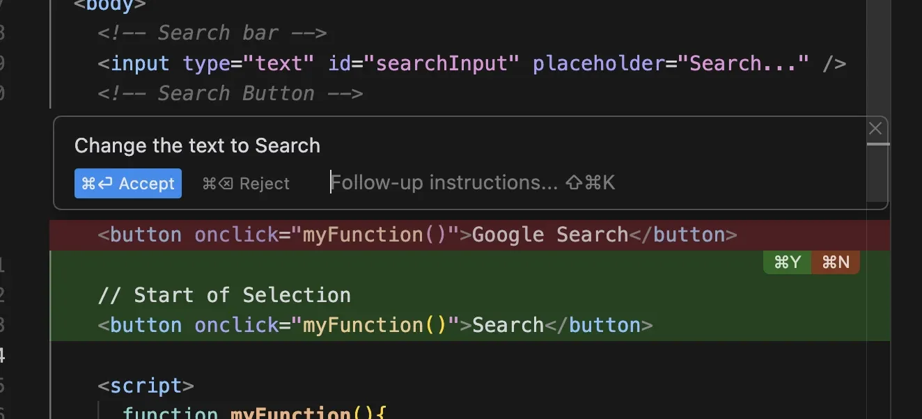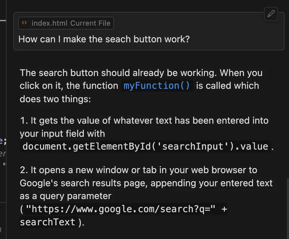 接着,我要求 Yi-Coder-9B 修改按钮上的文字标签,模型成功解释了搜索按钮的功能。