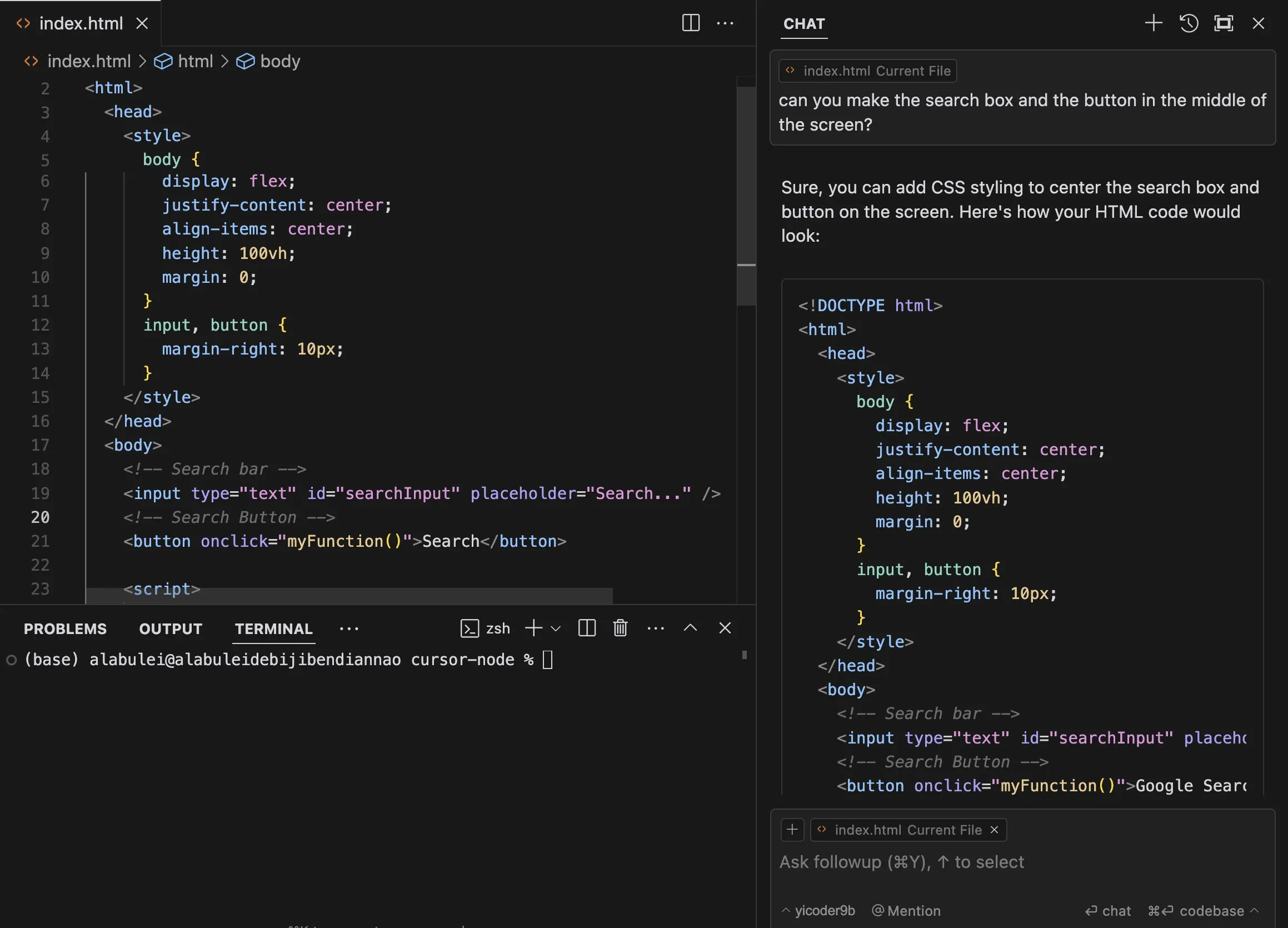 现在,让我们测试 Yi-Coder-9B 来编写一个简单的搜索页面。