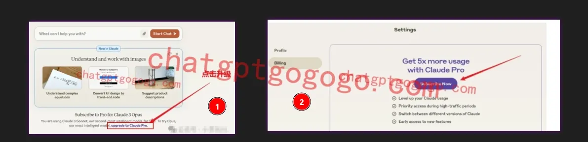 - 登录 Claude 的首页,成功登录后,点击 升级到 Claude Pro。