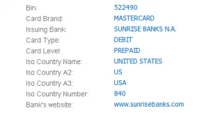 - 发卡公司/发卡行:SUNRISE BANKS N.A.