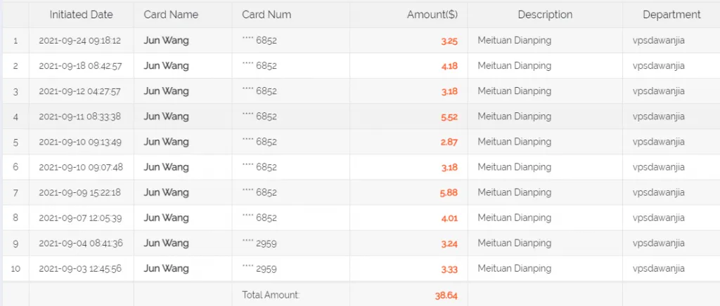 许多商家设定了15或20元的起送价,大约2-3美元,可以轻松消费掉虚拟信用卡中的余额,避免提现手续费。9月份的外卖订单数量有些过多。