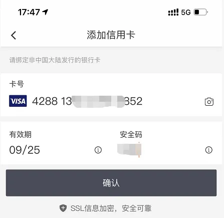 接下来,依次输入卡号、持卡人姓名、有效期及安全码。