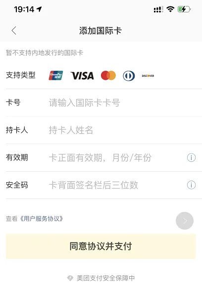 美团外卖是许多用户手机中使用频率最高的应用之一,支持VISA、万事达、DISCOVER等组织发行的虚拟信用卡。绑定卡的步骤如下:选择心仪的食品或饮料(如蜜雪冰城),提交订单后选择国际卡支付。