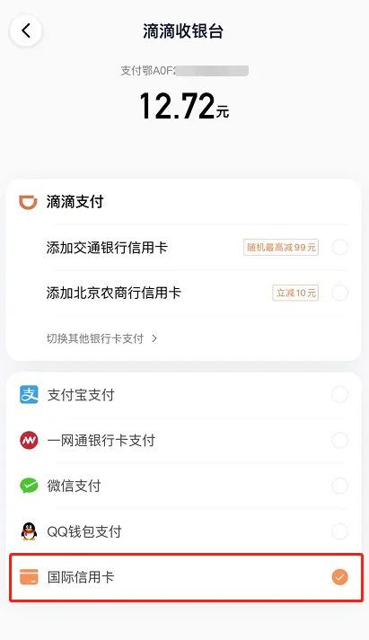 滴滴出行同样可以方便地帮助用户消费虚拟信用卡中的余额。
