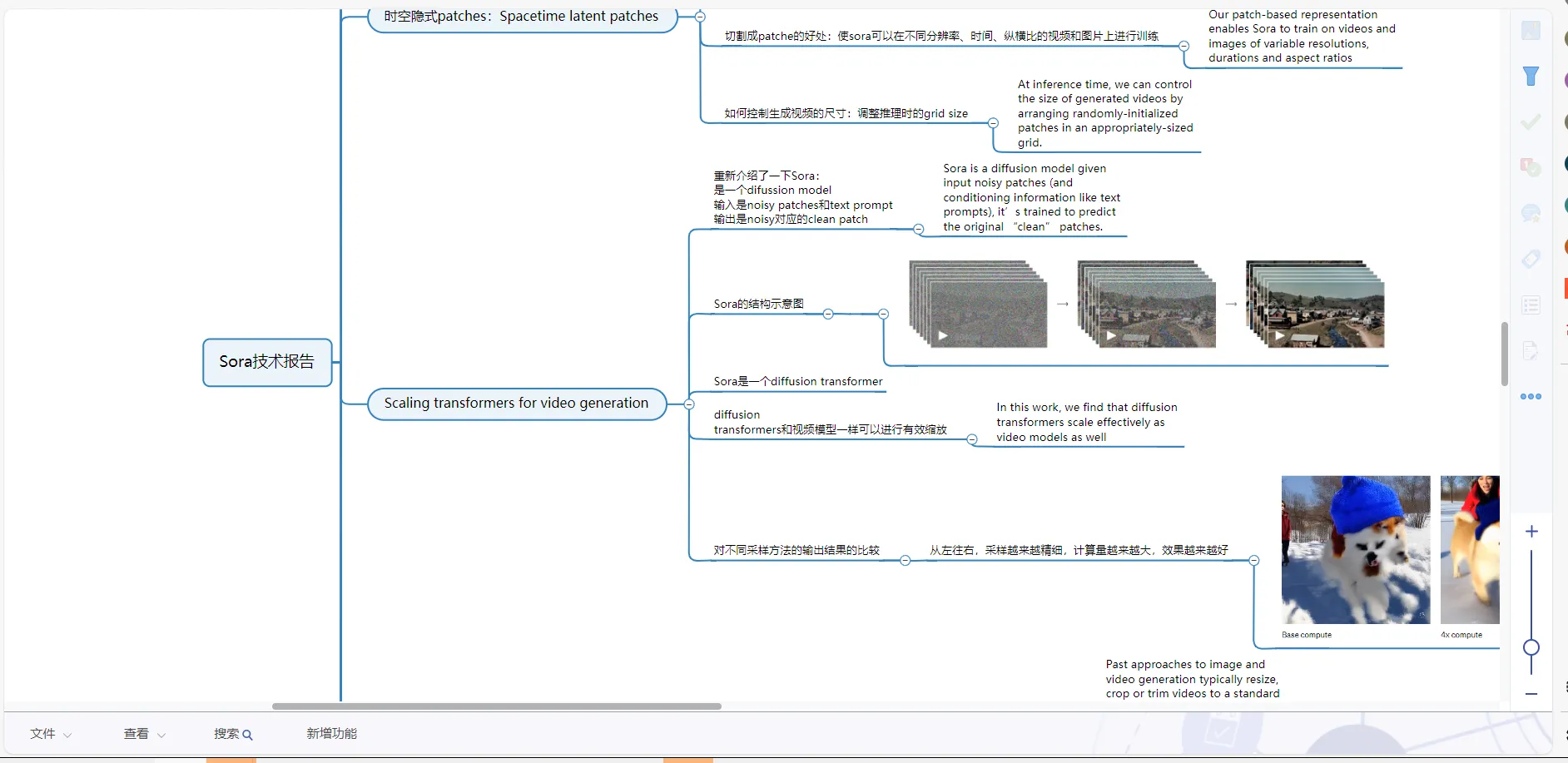 这份思维导图是对Sora技术报告的总结,旨在帮助大家更直观地理解Sora的技术细节。