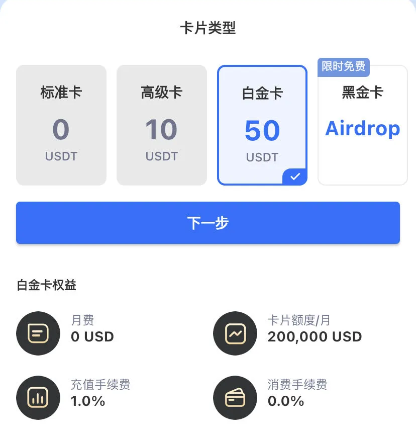 - 免 KYC 开卡费为 10美元(匿名性更好)。