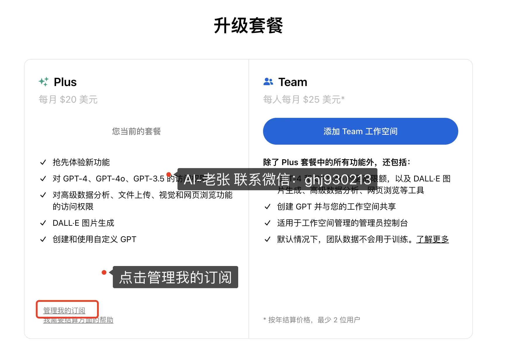 在“我的方案”页面,您将看到当前的订阅状态和详细信息。找到并点击“管理我的订阅”(Manage my subscription)按钮。这将带您进入更详细的订阅管理界面,在这里您可以执行ChatGPT退订操作。
