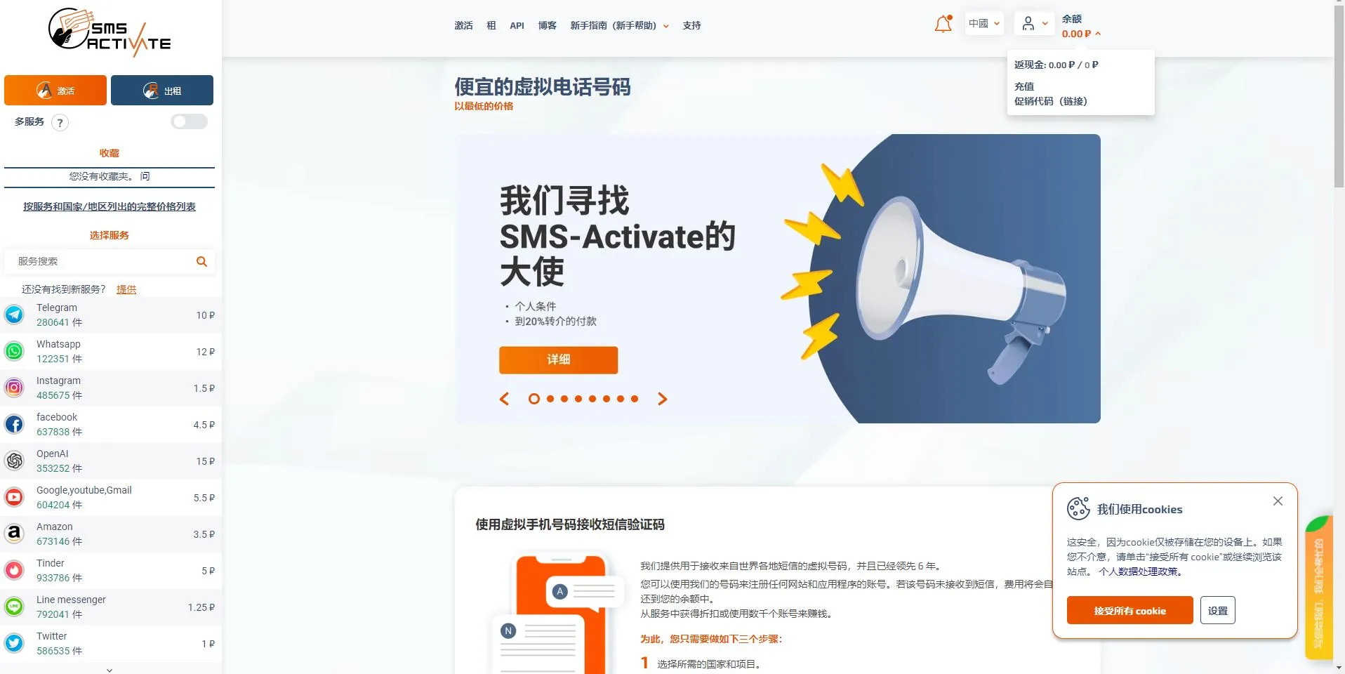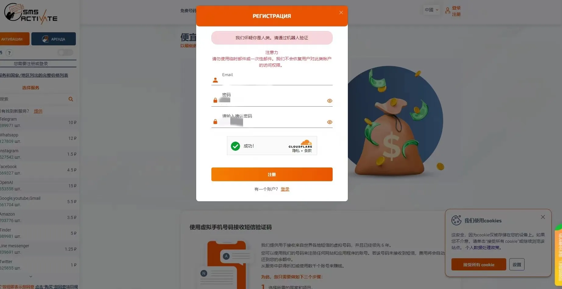 打开海外短信接码平台,使用国内邮箱注册(如 163、QQ 邮箱),注意选择中国作为国家。