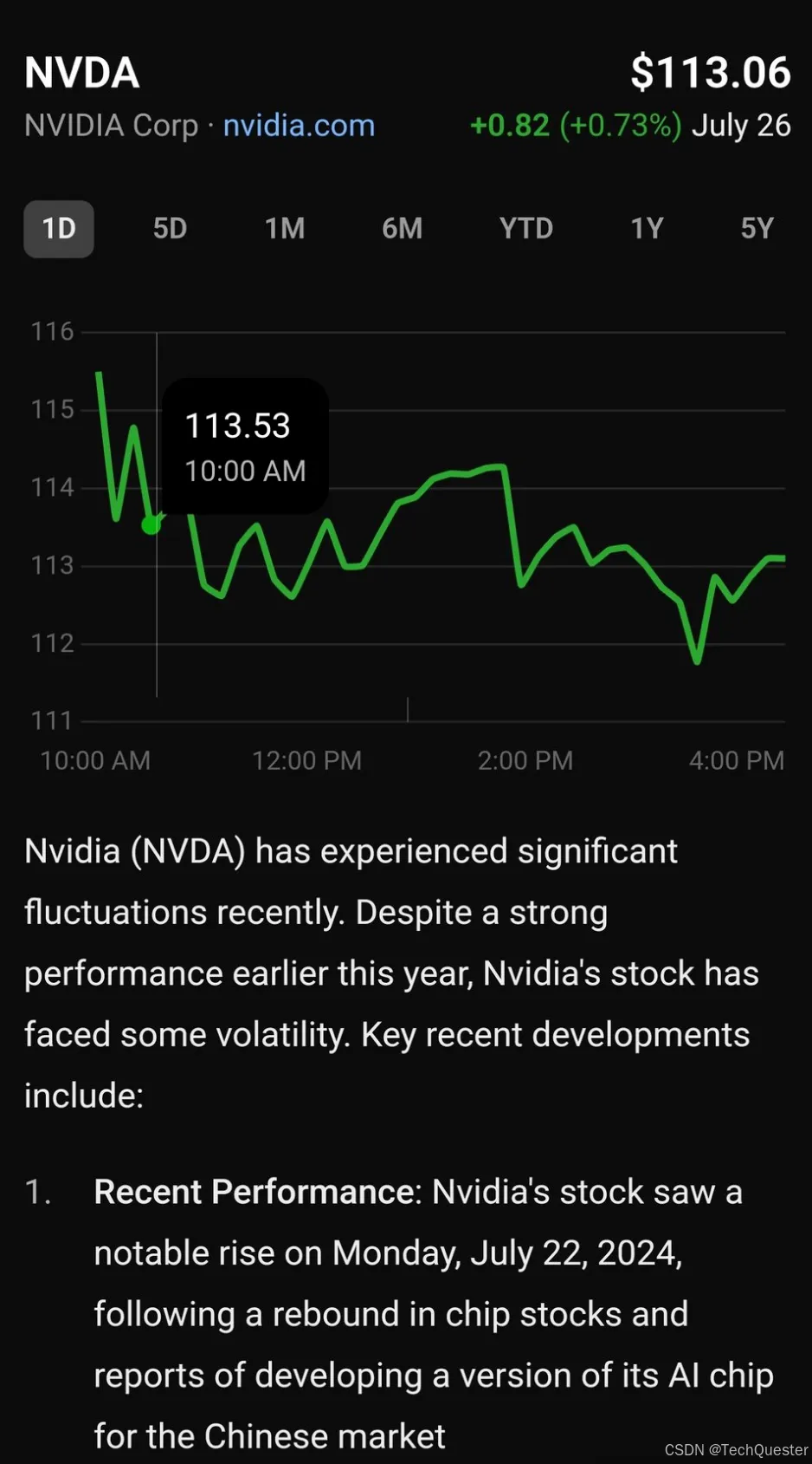 此外,页面左侧还有一个图像按钮,点击后可以聚合展示图片搜索结果。其他问题也能看到类似的直观展示,例如搜索英伟达的股票时,最显眼的位置会显示股价曲线图,甚至可以直接播放YouTube视频。