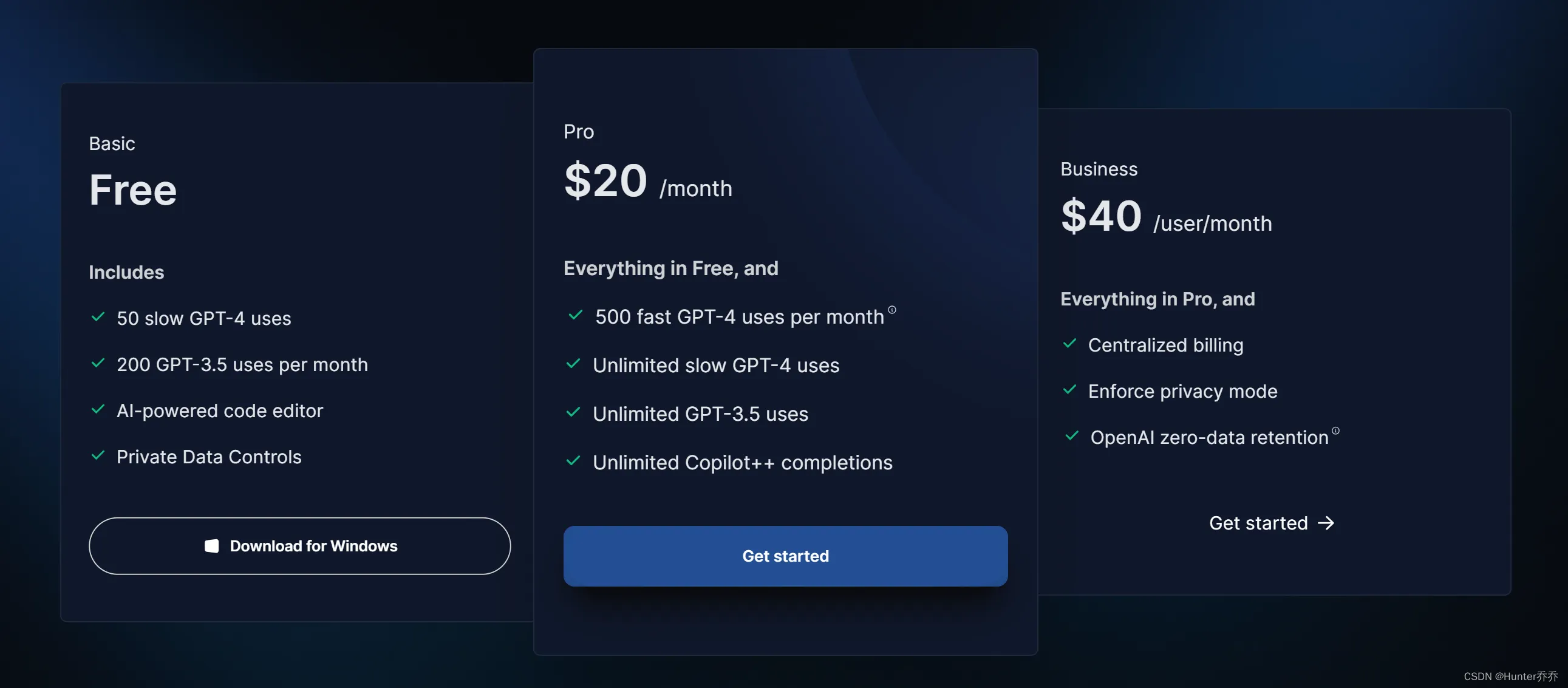 然而,由于发布初期完全免费,导致运营成本过高,Cursor现已转为部分收费。每月提供200次GPT-3.5和50次慢速GPT-4.0的使用次数,对于大学生来说已经足够。如果你是氪金大佬,可以选择购买会员,但价格与ChatGPT-4.0相当,建议认真考虑。