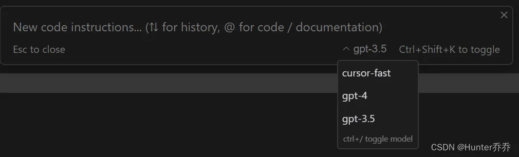 使用快捷键Ctrl+K呼出对话框,切换为gpt-3.5,避免消耗4.0次数。