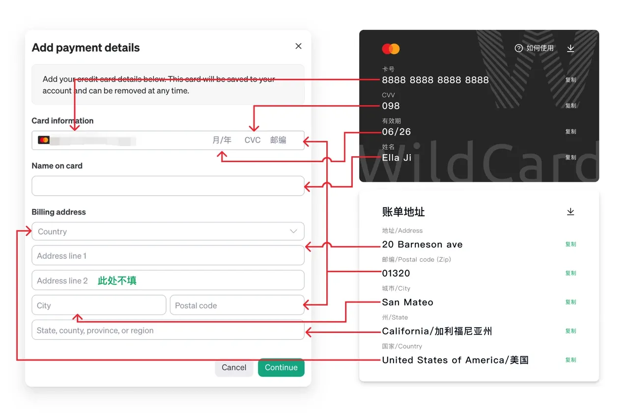 第二步:回到 OpenAI API 填写卡号信息页面,完成填写。