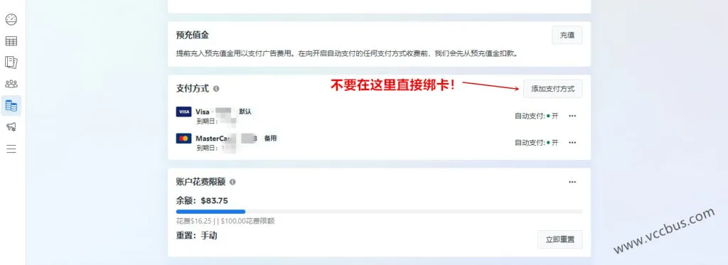 在这里重新尝试添加信用卡。有成功案例表明,采用这种方式可以解决绑卡失败的问题。