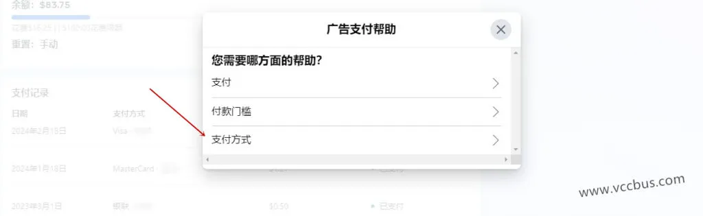 请勿直接在“账单与支付”页面绑定信用卡。相反,您可以将页面滚动到最底部,进入“获取帮助”页面。