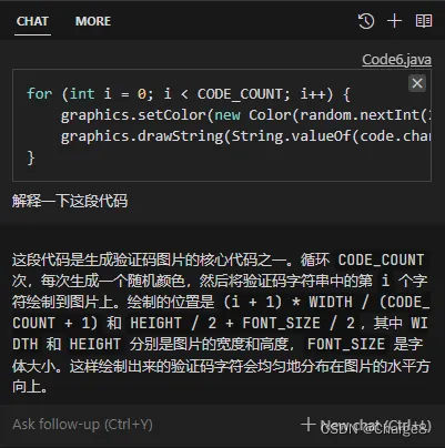 右侧的 Chat 可以让它解释代码。