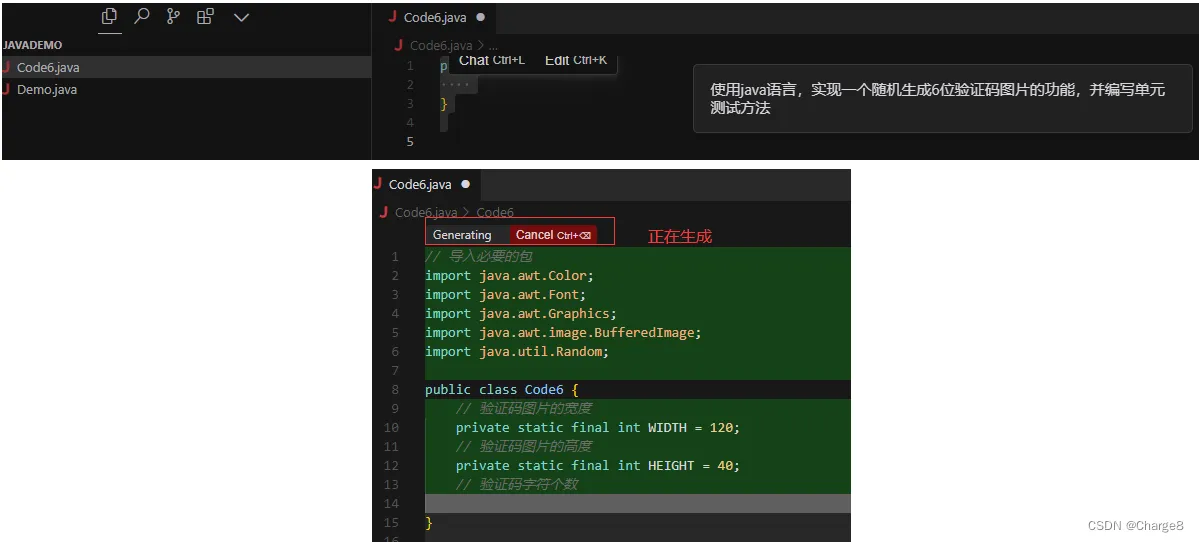 这里我们通过 Cursor 生成一个 6 位验证码图片的功能。