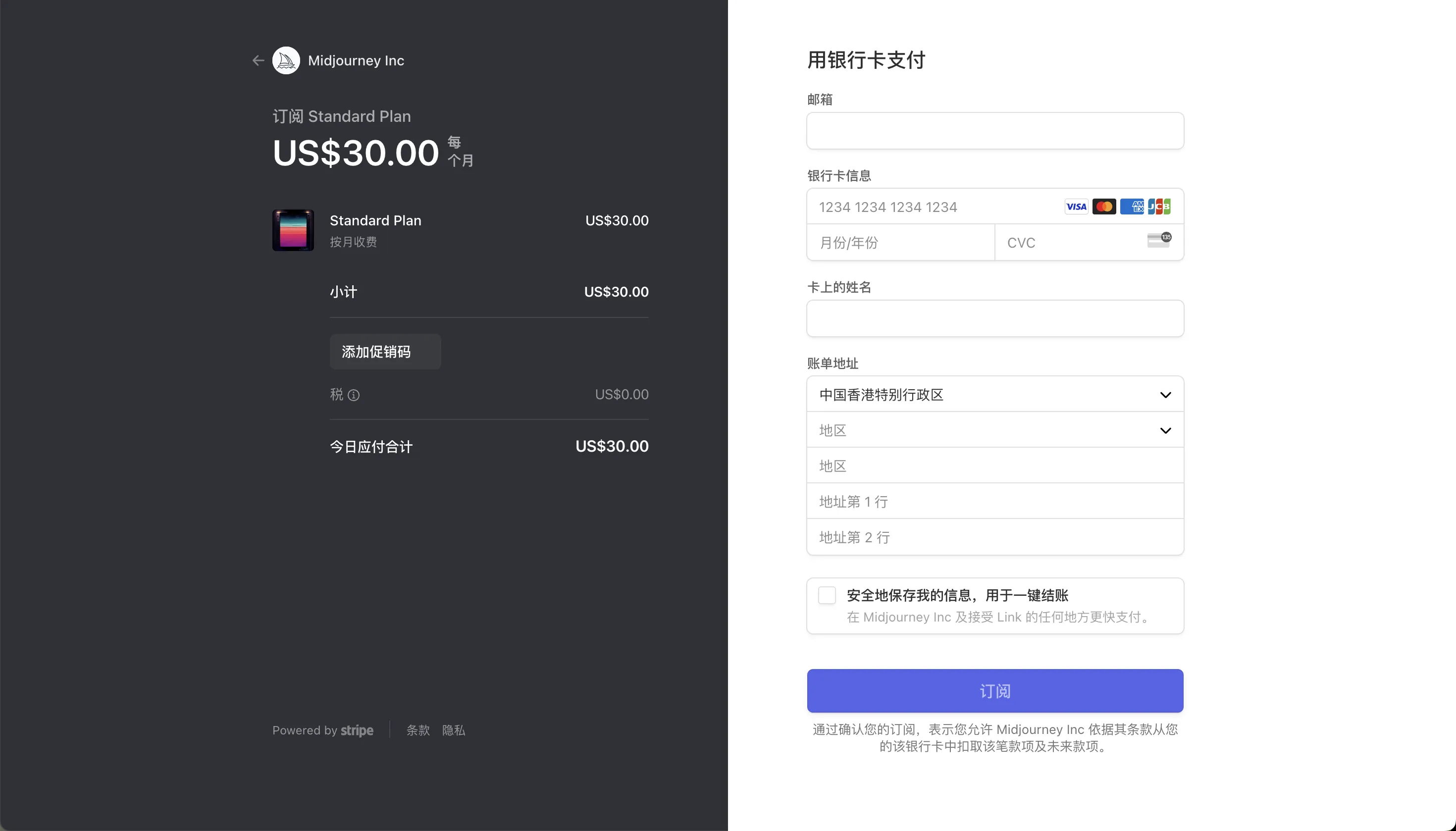 - 充值旁边的「CVC安全码」可用于充值 Midjourney 时所需的信息。