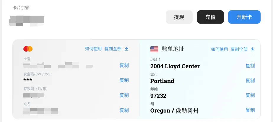 开卡后,你将看到虚拟信用卡信息,充值订阅费用即可使用,因此订阅费用为开卡费($9.9)加上订阅费用。