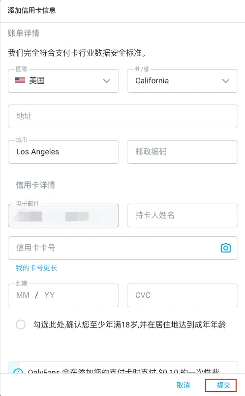 将你的虚拟信用卡信息填写在提交页面,点击提交即可完成订阅(注意卡内需有余额)。